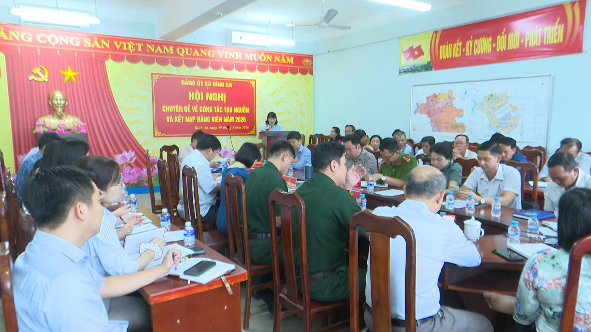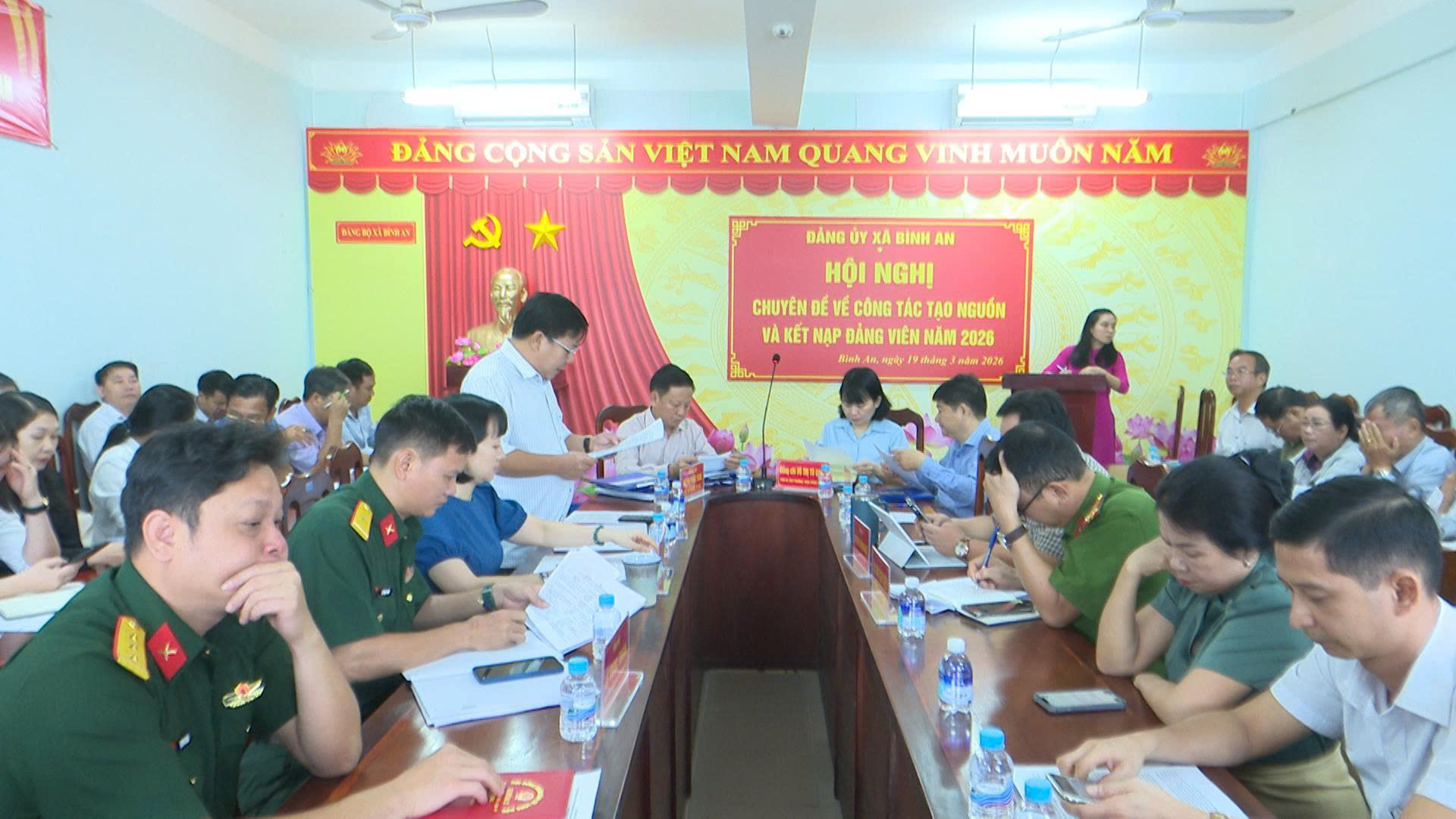Sáng ngày 19/3/2026, Đảng ủy xã Bình An tổ chức Hội nghị chuyên đề nhằm đánh giá tình hình, đề ra giải pháp nâng cao hiệu quả công tác tạo nguồn và phát triển đảng viên, phấn đấu hoàn thành chỉ tiêu kết nạp đảng viên năm 2026.